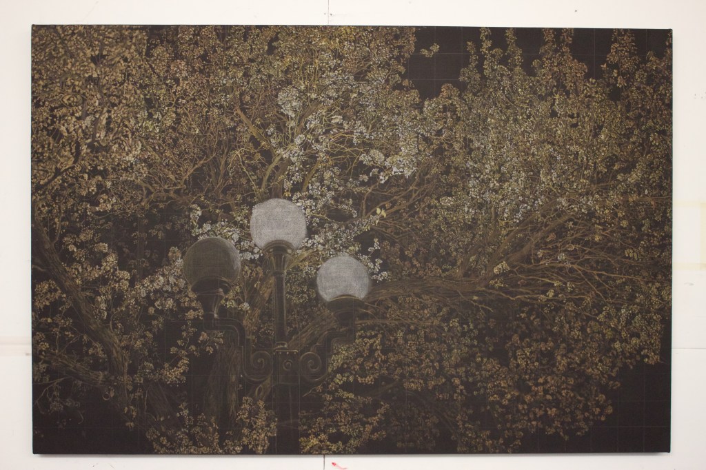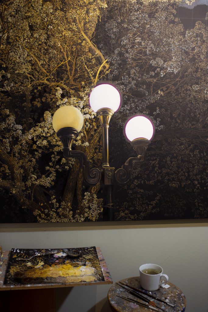 The first thing I painted was the lamp. I thought, if I can’t paint the lamp then there’s no use in going on, so I started with the lights:
